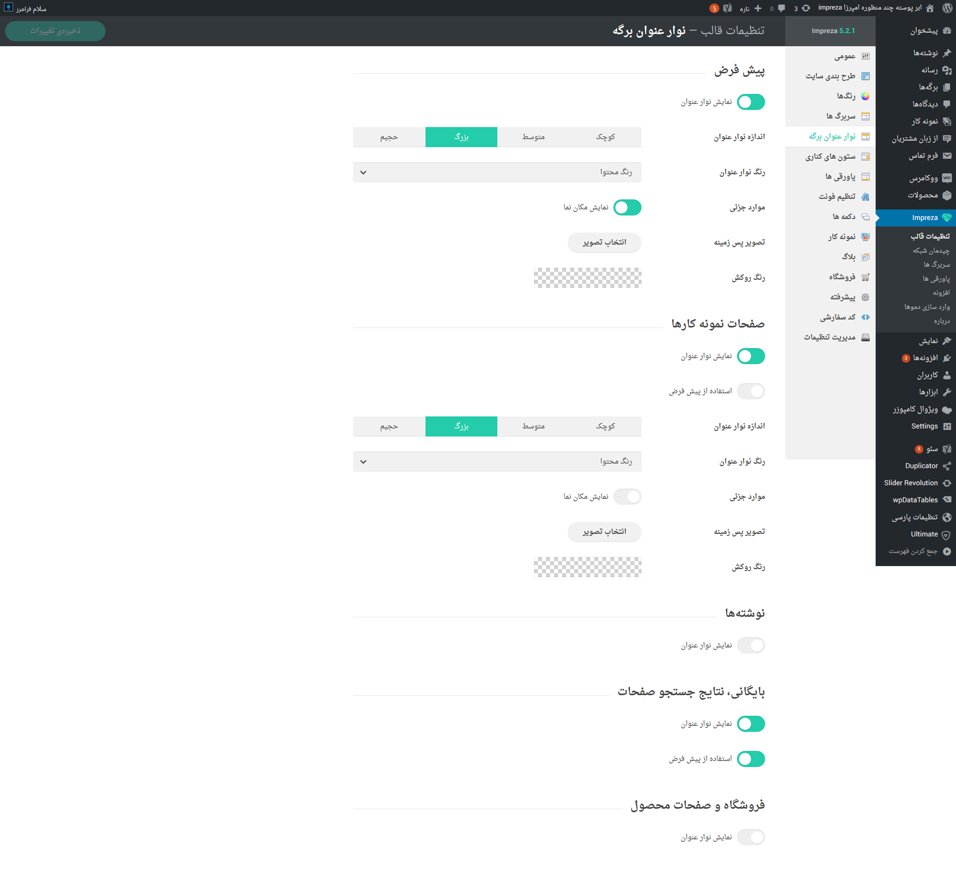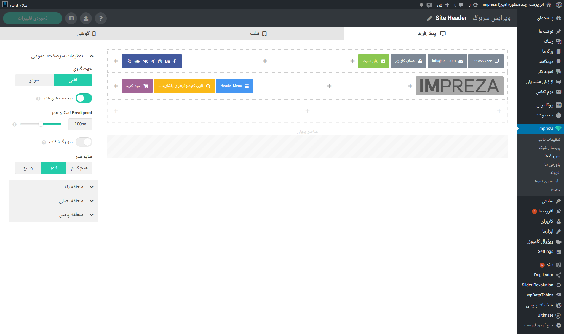 - تنظیمات پیشرفته برای هدر سایت و سربرگ صفحات