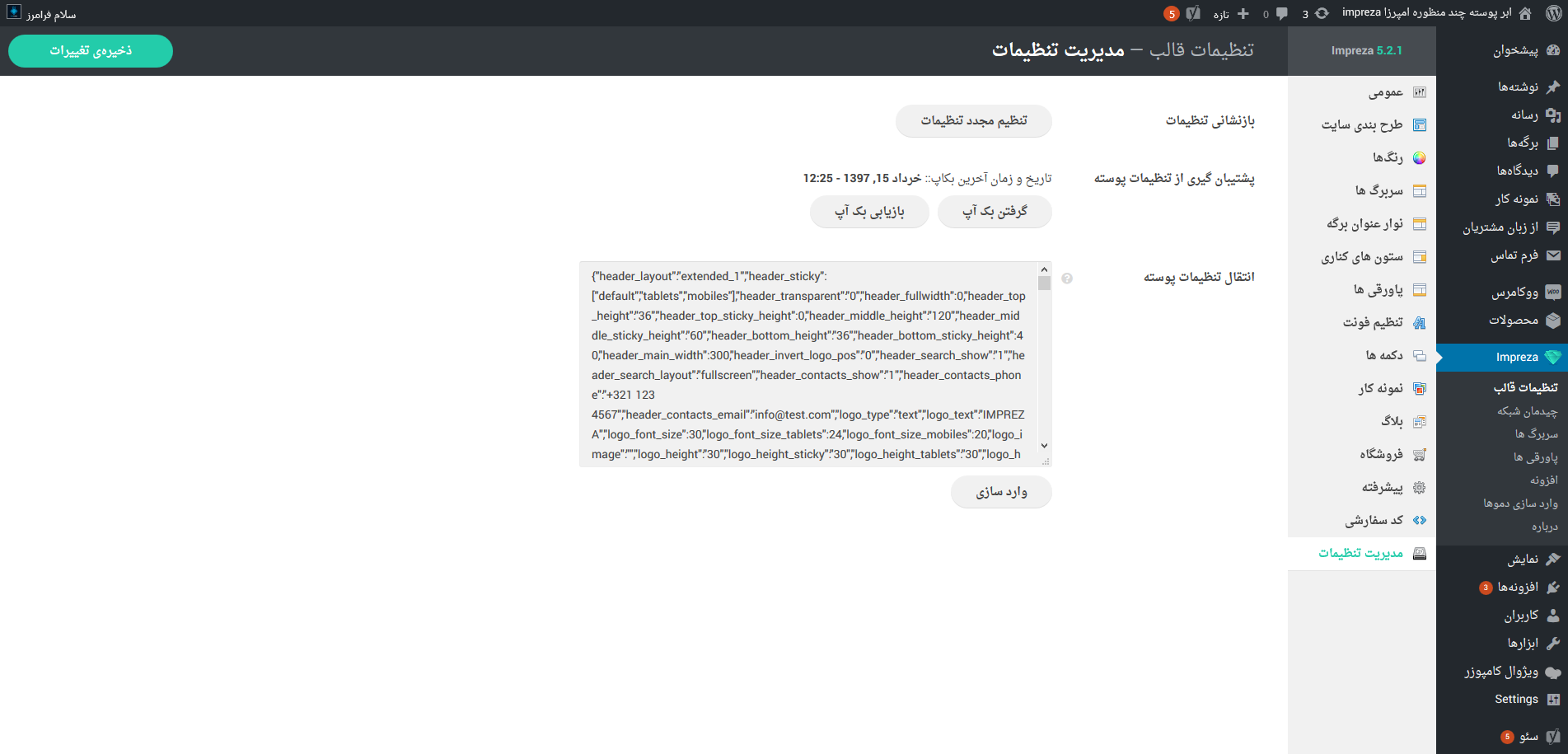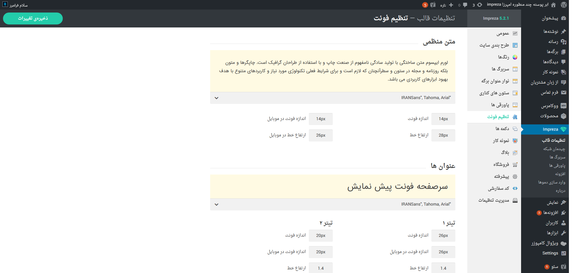 - پنل تنظیمات قدرتمند